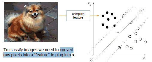 为了对图片分类,需要将原始像素转为特征feature,然后插入x中: