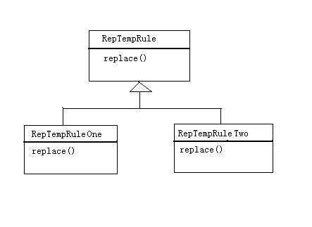 | public class test{ ...... public void testReplace(){ //使用第一套替代方案 //使用第二套 solver=new RepTempRuleSolve(new RepTempRuleTwo()); } ..... } |