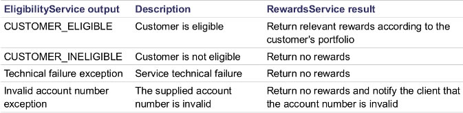 下面是EligibiityService 的预期输出和rewardService的相应结果: