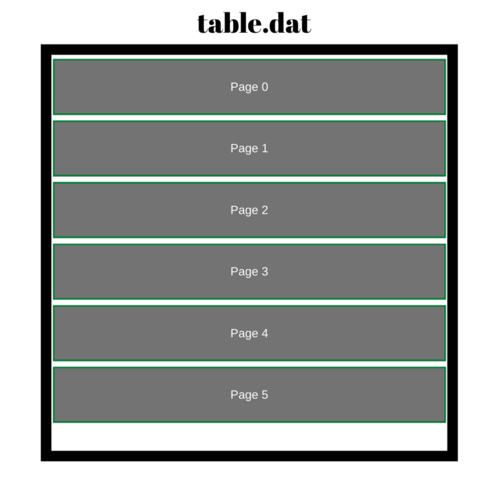 数据库中的数据以页结尾,无论是索引、序列还是表行。这使得数据库更容易处理页,而不管页本身有什么。它自己的页有一个标题和数据,并作为文件的一部分存储在磁盘上。每个数据库对页的外观以及它在磁盘上的物理存储方式都有不同的实现,但最后,概念是相同的。