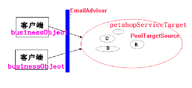 客户端调用PetshopServiceTarget,只要调用getBean(“businessObject”)即可。