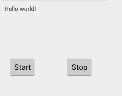 正如我们所知道服务必须首先被启动,并在完成它的任务后最终停止。我们可以从活动Activity启动它,我们可以使用Intent传递给服务一些信息。假设我们有两个按钮,一个开始和一个停止服务.