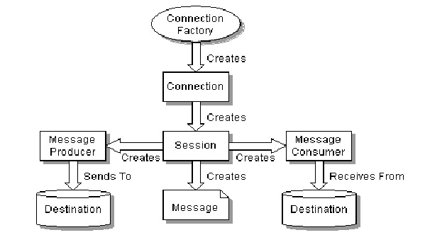从上面JMS的架构图可以看出事件三个角色Producer和Consumer以及事件信息本身Message.JMS就是在Producer和Consumer之间建立一个连接Connection.