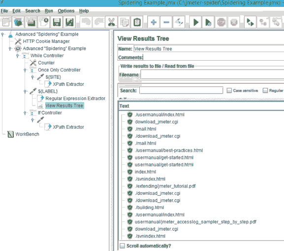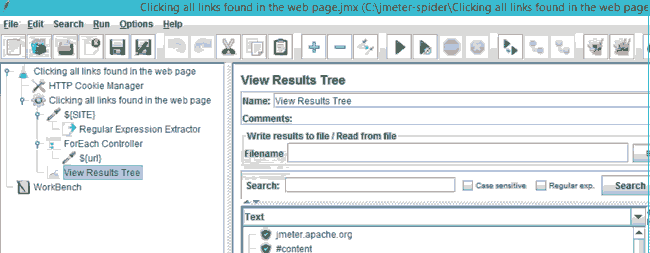 假设上述方法的局限性,您可能想要一个解决方案,它不会因为错误而崩溃,并且将爬行整个被测试的应用程序。 下面你可以找到一个参考测试计划大纲,可以用作你的“蜘蛛”的骨架: