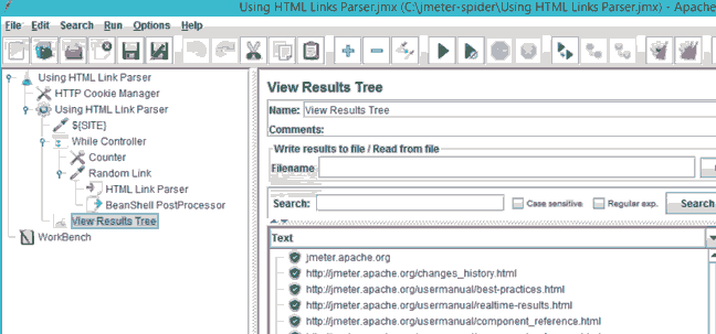 JMeter的提供了一个特殊的测试元件, HTML解析器的链接 。 此元素设计用于提取HTML链接和表单,并使用提取的值替换匹配的HTTP请求采样器相关字段。 因此,HTML链接解析器可用于模拟使用最少配置抓取网站。 方法如下: