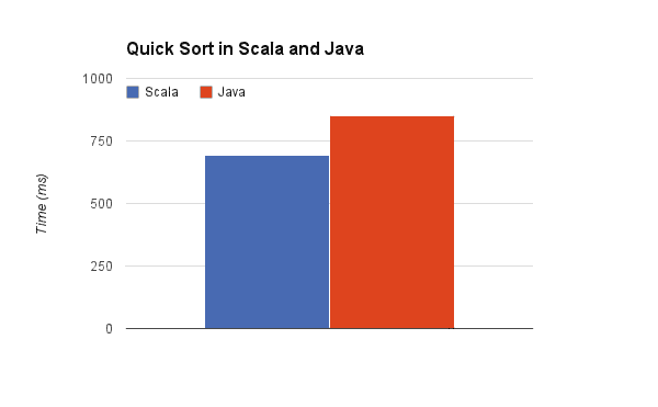 我们要选择一个性能测试样本:快速排序算法这个很简单的算法。提供Scala和Java的实现,排序100000元素100倍,看看每个需要多久完成排序。开始用Java: